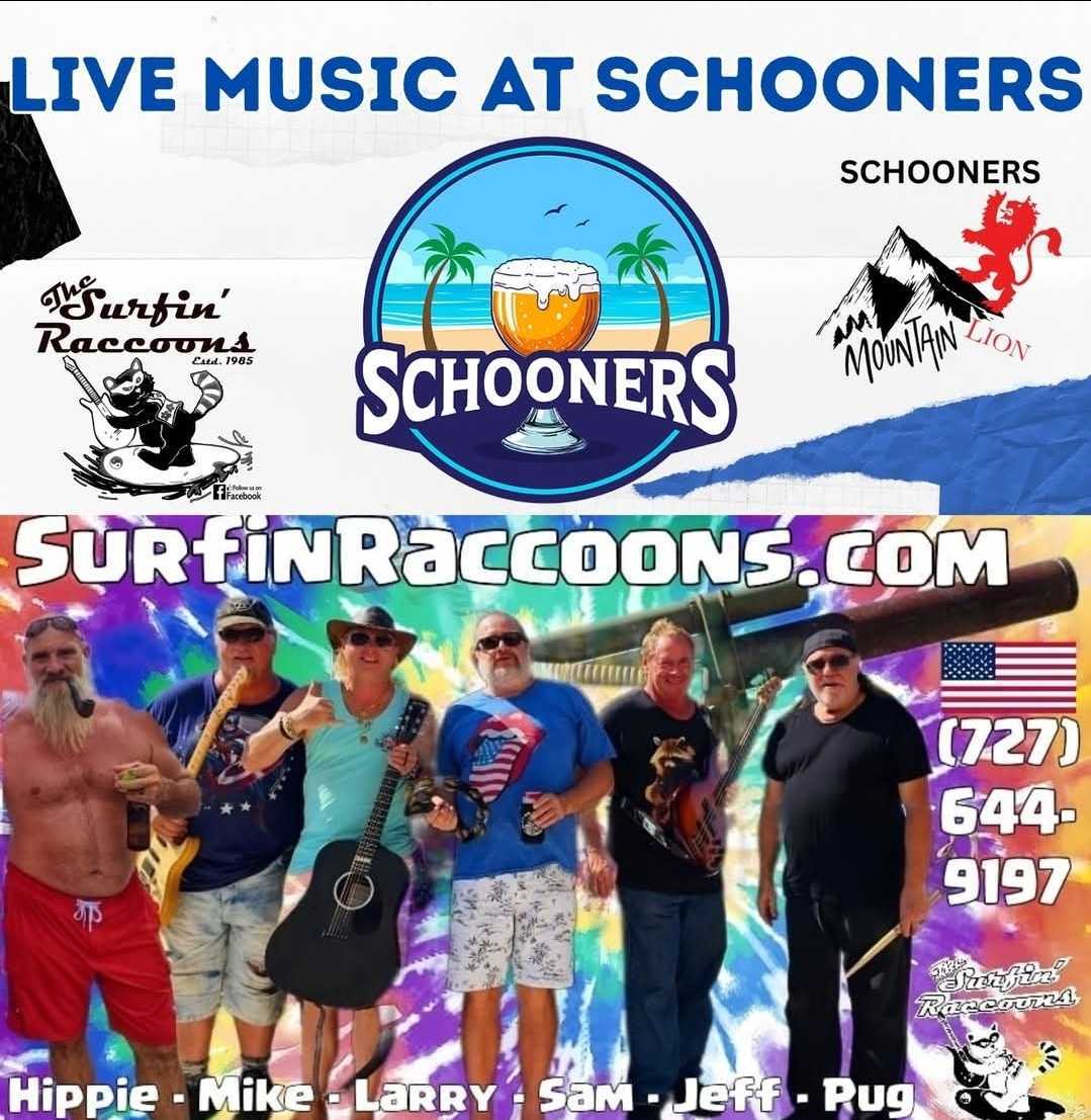 The origins of the band date back to 1985 where a group of musicians gathered for a party at the Cinder Block, a frequent party location. A decorative beach towel showing a raccoon on a surfboard provided the inspiration for the Surfn' Raccoons name. An eclectic mix of influences from Chuck Berry, The Doors, Grateful Dead, The Rolling Stones, The Ramones, Tom Petty, Johnny Cash, Red Hot Chili Peppers and more.