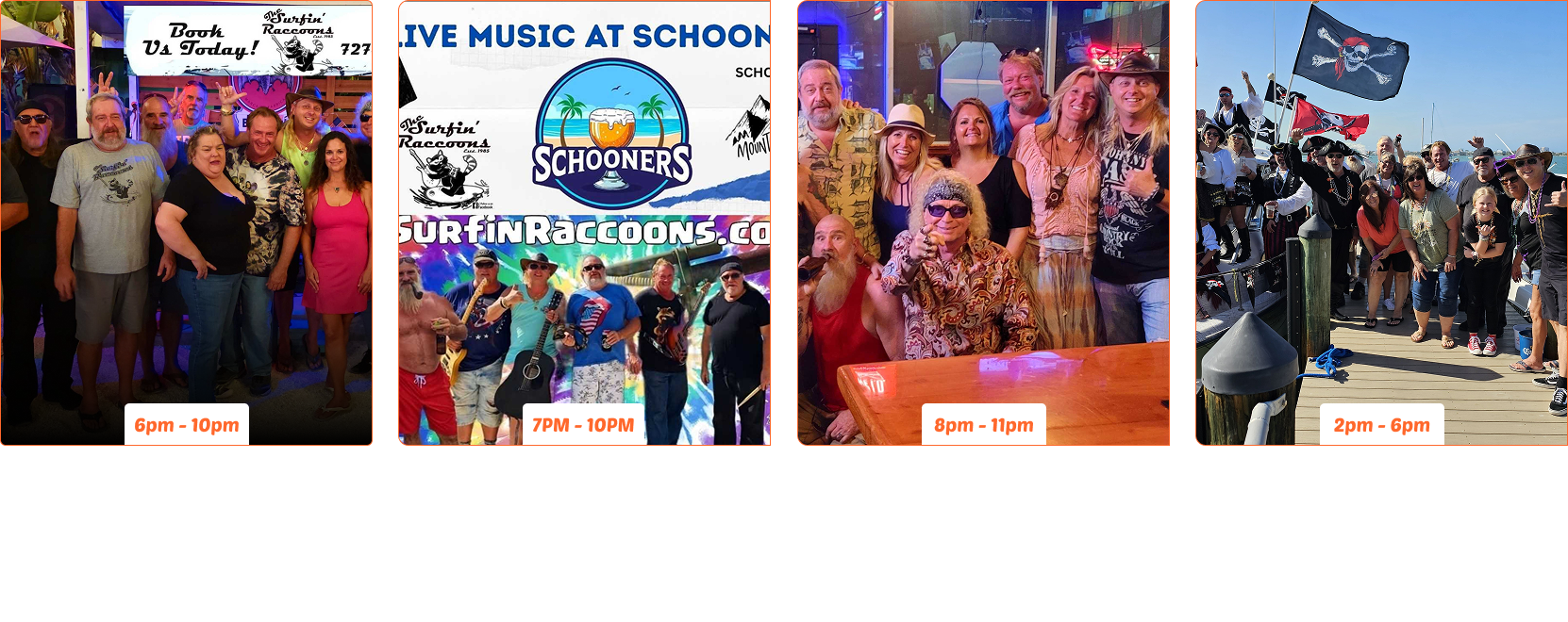 The Surfin’ Raccoons have opened for international and national recording artists including Molly Hatchet, Derek Stoner, and Jordan Davis, and have headlined major events such as the Bluffs Wine Walk, Rising Tide Music Festivals, the Valspar Golf Tournament, and large-scale community celebrations.